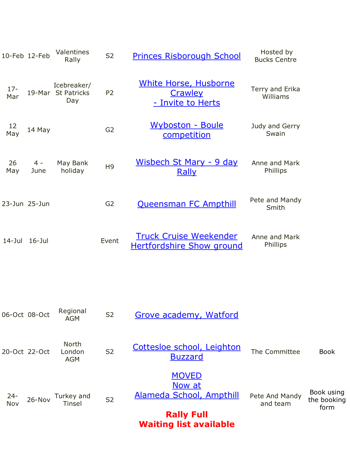 S2/4 = 2/4 day rally - Sheltered Socials in Village Halll/barn/school